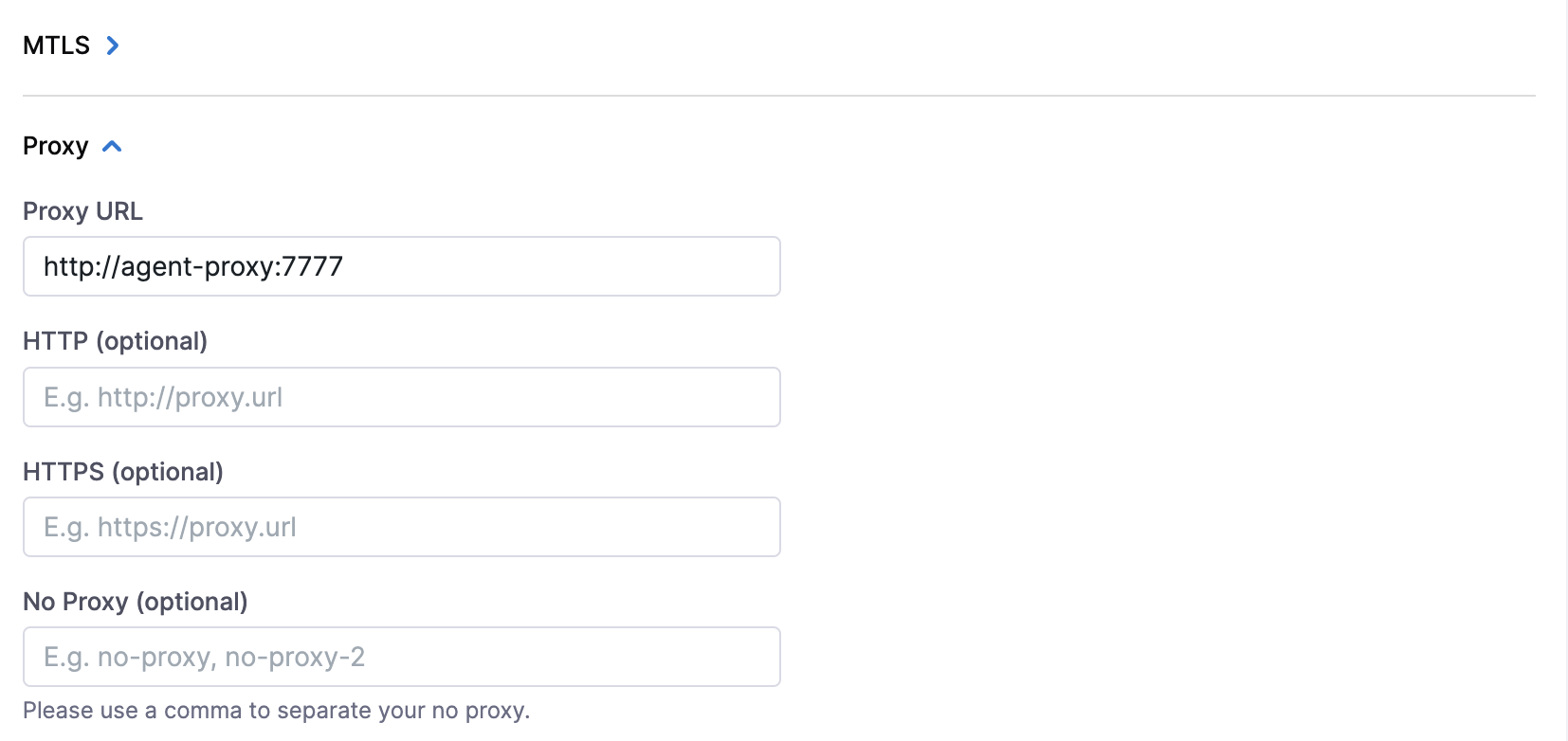 - In case you already have a proxy set up, you can provide the URL of the proxy in the UI.