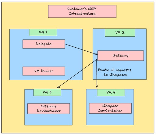 - Gateway routes tasks to corresponding Gitspace instances (VMs).