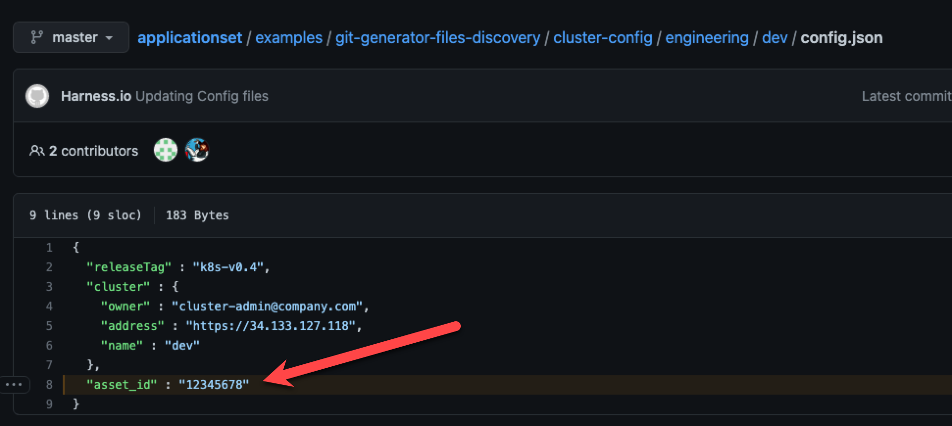 Before updating your application's config.json values, Harness also resolves the GitOps clusters in which your application is deployed. The referenced cluster is the same cluster you created when you deployed your application. You do not need to create any new entities in Harness.