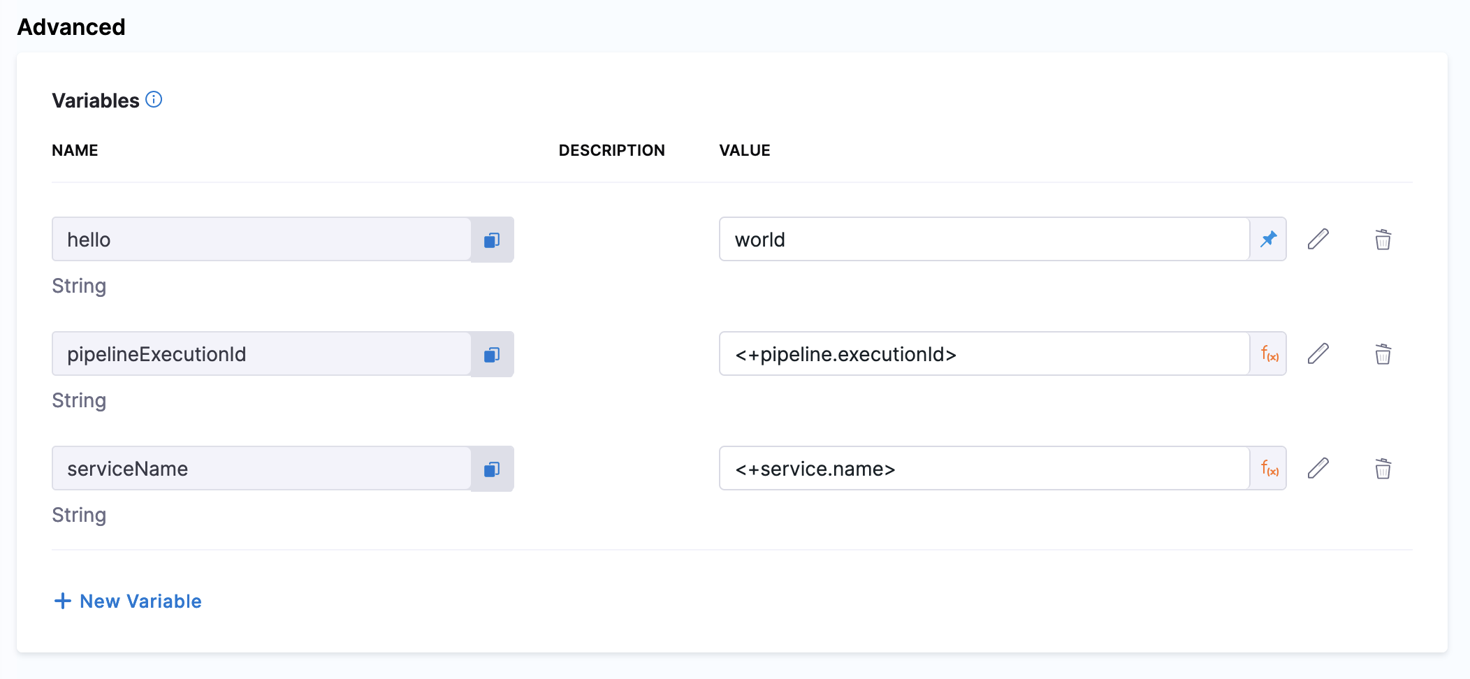If there is a matching variable name in the variables of the Harness service or environment used in this pipeline, the variable entered in this step will override them.