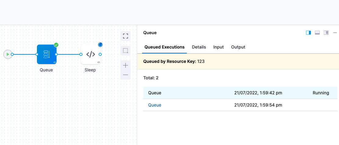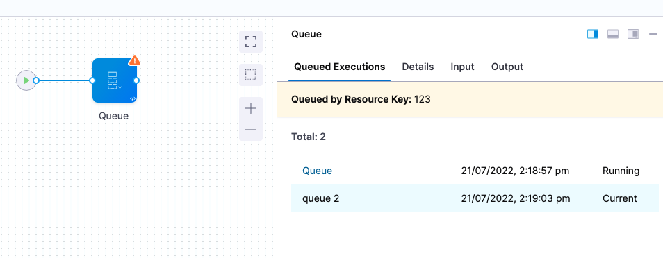 Here's another Pipeline, queue 2, with the same Queue step Resource Key. You can see it waiting for the Queue Pipeline to complete.