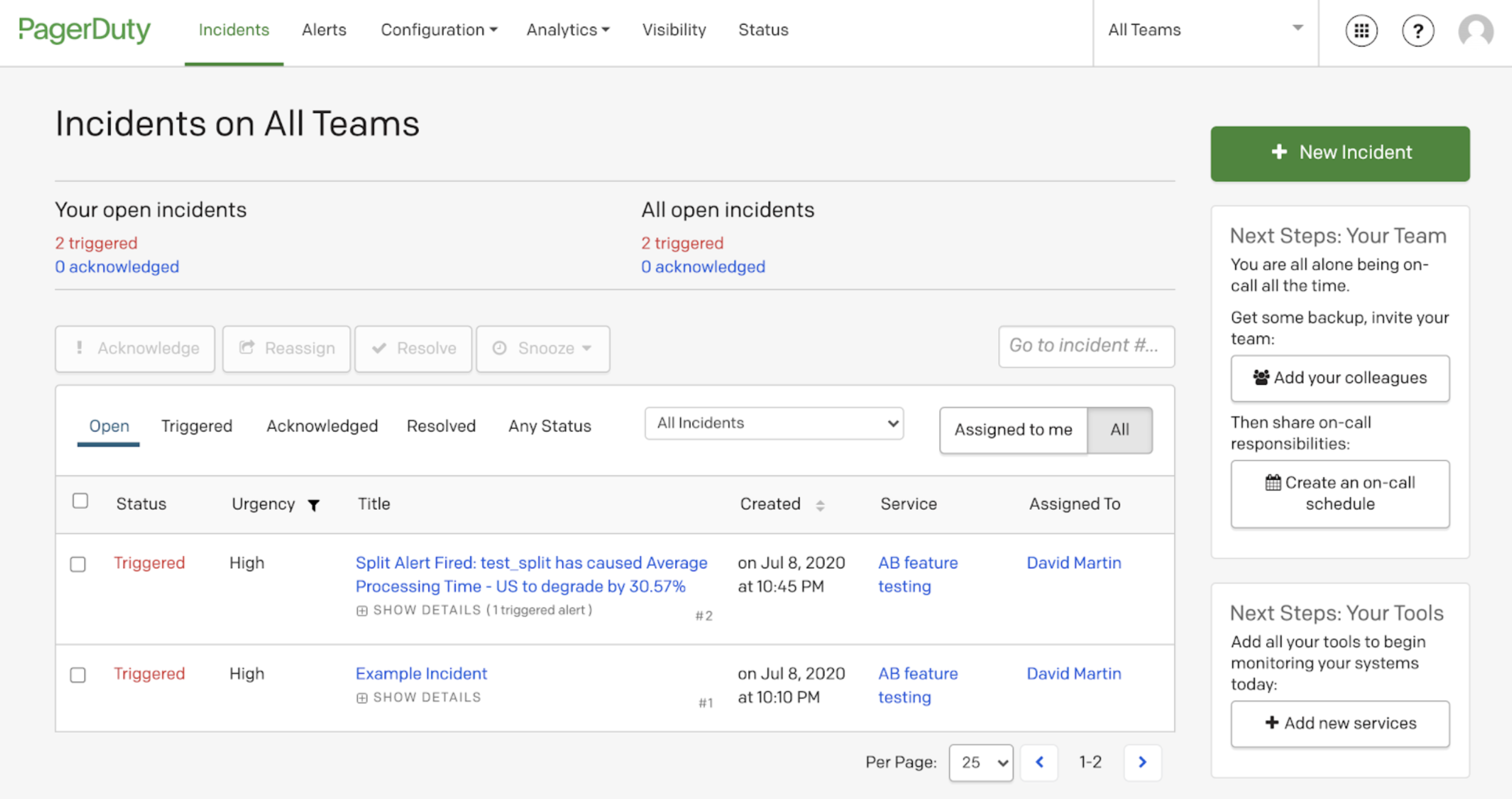 If the integration is configured properly, a new alert email from Harness FME appears as incidents in PagerDuty, per your rules configuration.