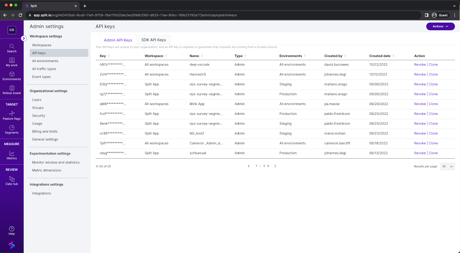 Admin type API Keys are used for access to Harness FME's Admin API endpoints.