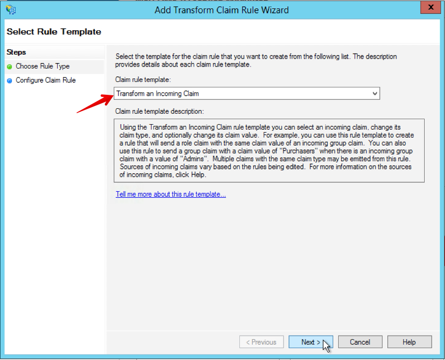 14. Select Transform an Incoming Claim, and then click Next.