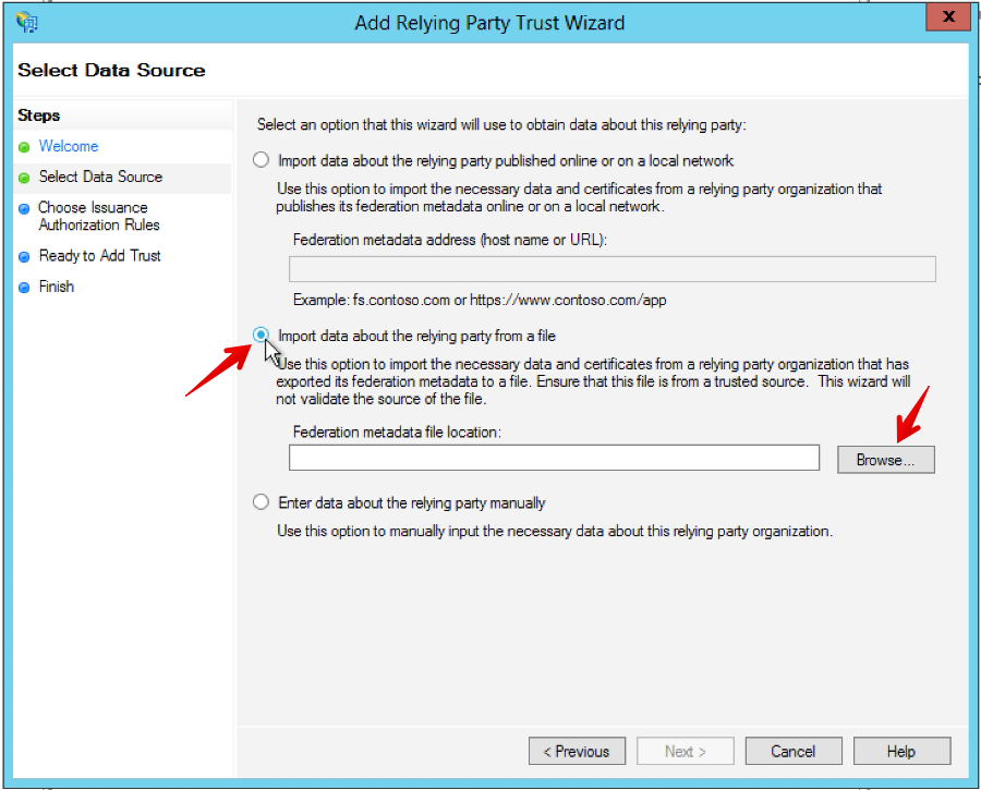 4. Select Import data about the relying part from a file.
