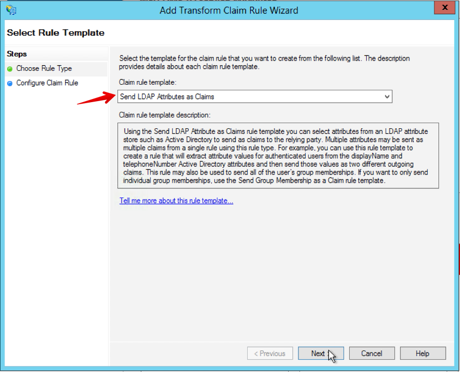 11. Select Send LDAP Attributes as Claims, and then click Next.