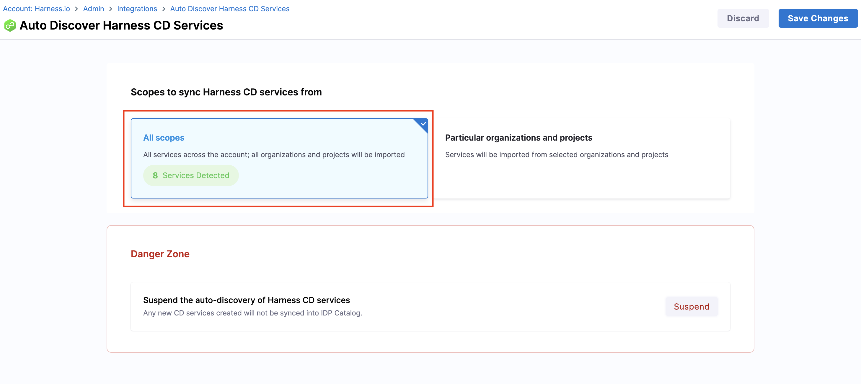 • RBAC: You can view and sync services from the same projects and organizations you have access to in Harness CD.