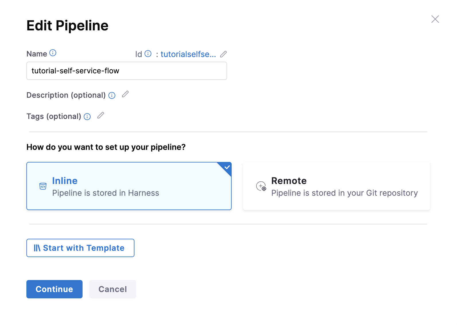 1. Then select Create a Pipeline, add a name for the pipeline and select the type as Inline
