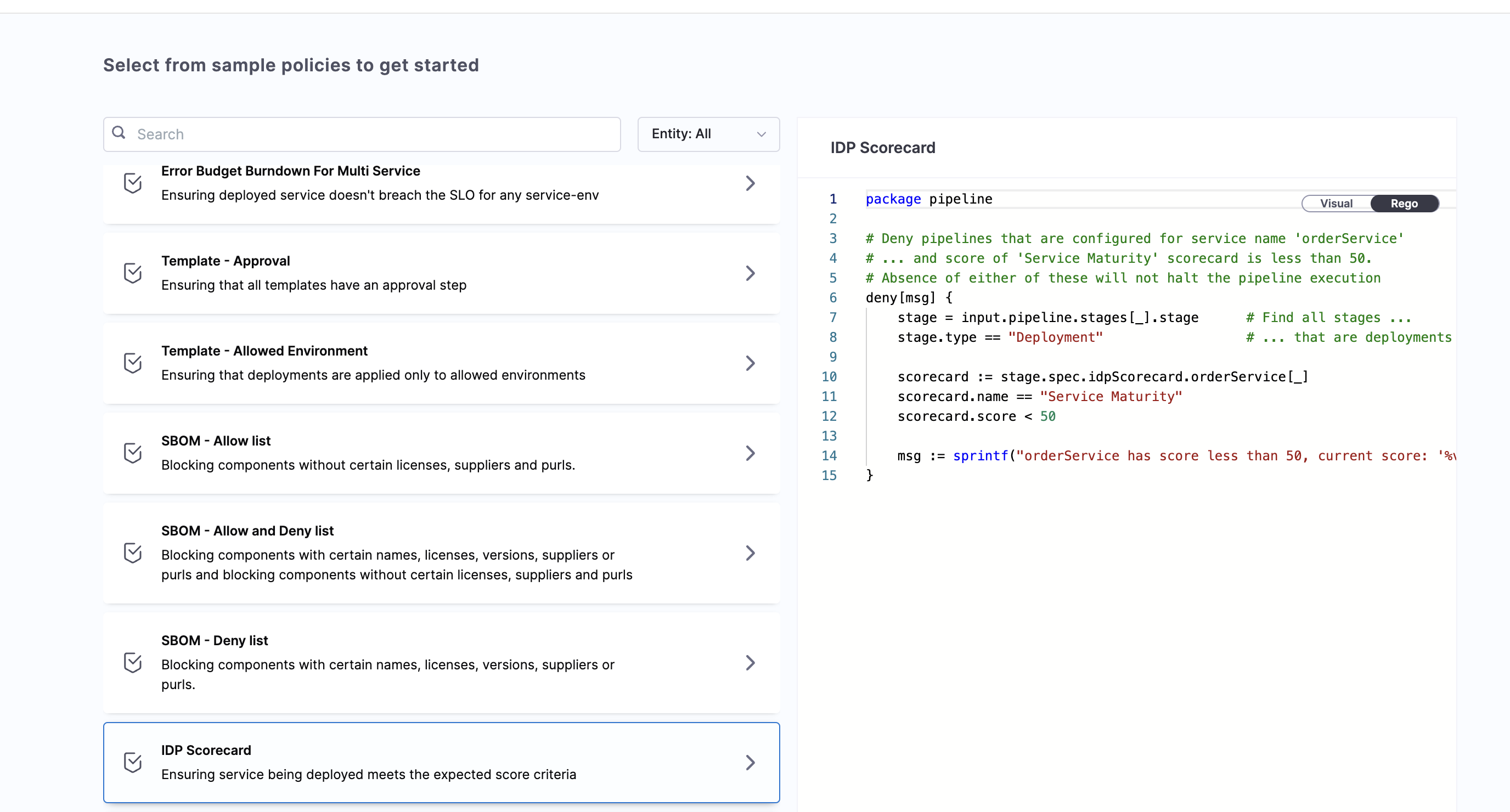 In the REGO script we use stage.spec.idpScorecard.orderService[_] to fetch the Harness service ID mentioned in the annotation harness.io/cd-serviceId: <SERVICE_IDENTIFIER>. If you have followed the onboarding guide then this annotation is auto ingested in your catalog-info.yaml or-else you have to manually add it.