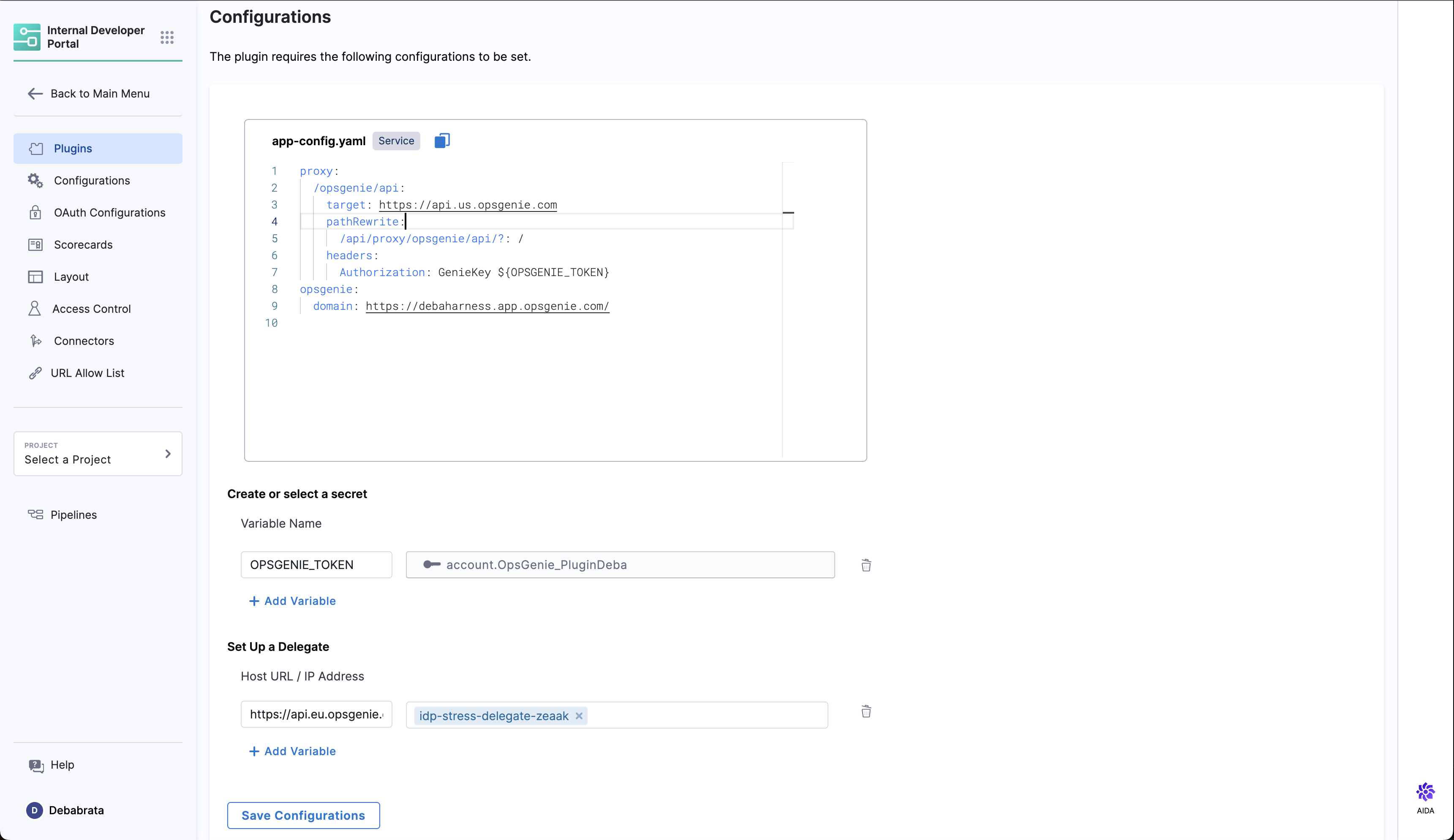 app-config.yamland Edit YAML to configure your Opsgenie instance in the target field and add your domain in the format as shown below.