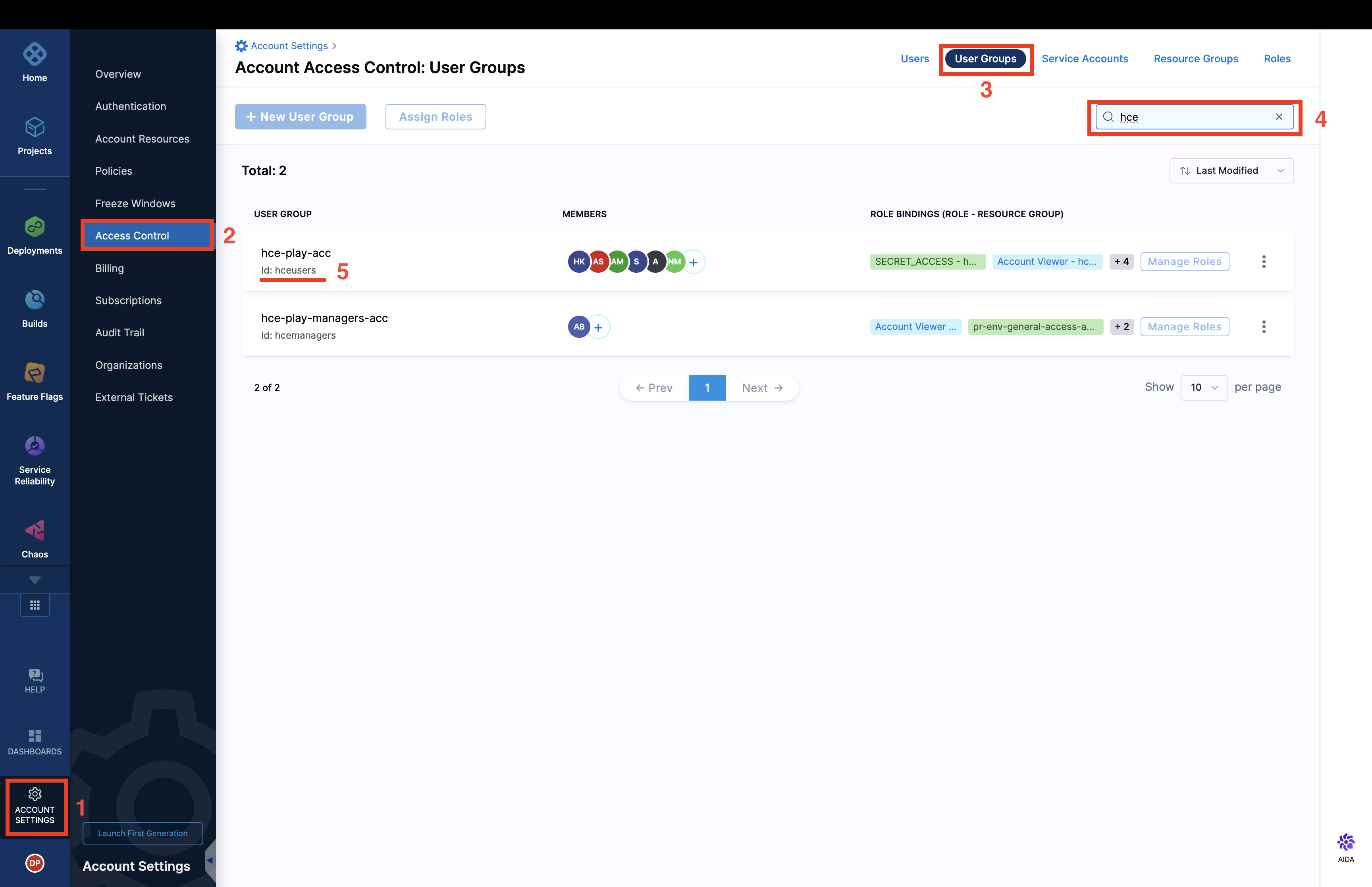 • Navigate to the bottom left of the Harness dashboard and select Account settings.