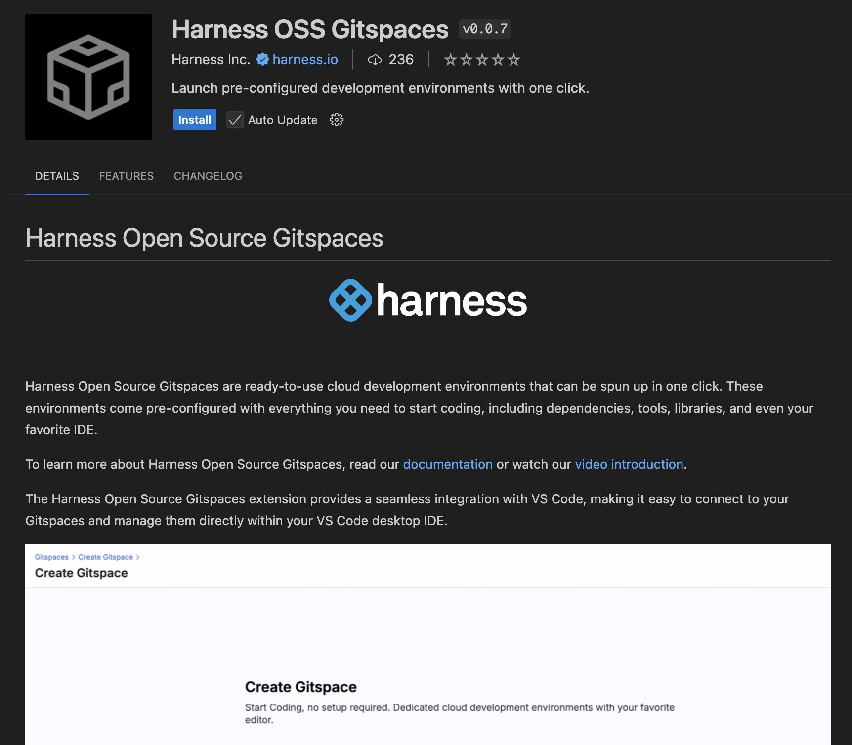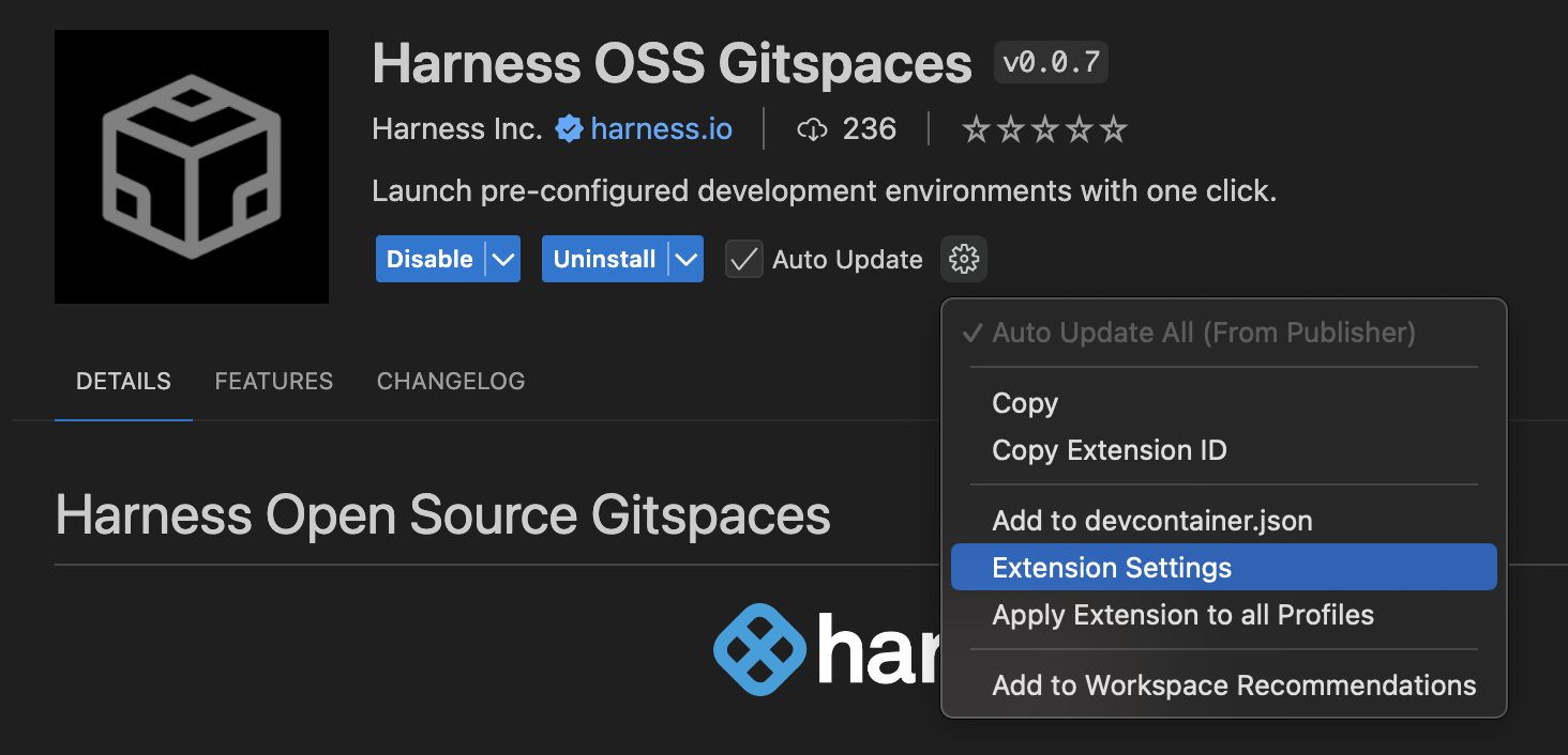 - Harness Open Source Gitspaces extension installed (Refer to the steps below)