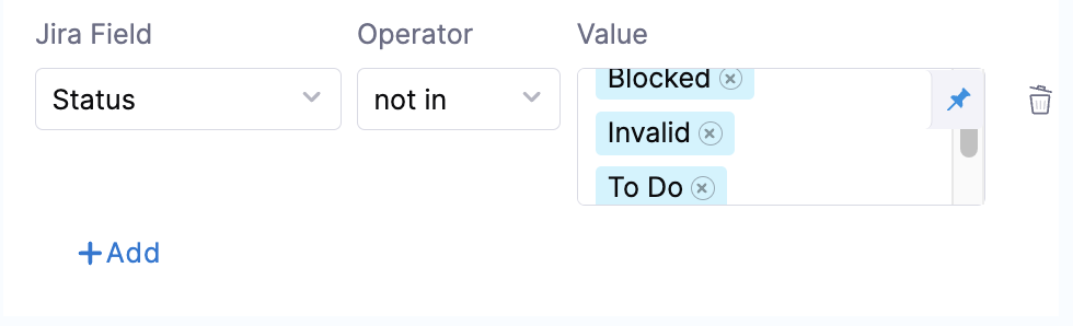 Statusfield to not be in eitherBlocked,Invalid, orTo Docan be specified as: