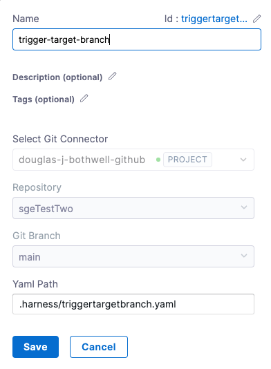 You now have a pipeline, input set, and trigger that you can use in new branches that you create from the default branch. When a webhook payload arrives, the trigger selects the branch to use based on the Pipeline Reference Branch field (<+trigger.branch>) and the Git Branch field in the input set (<+trigger.branch>).