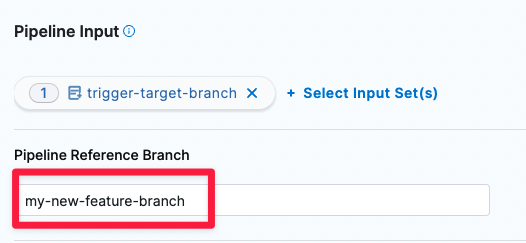 In the Pipeline Input tab, specify the branch name in the Pipeline Reference Branch field.