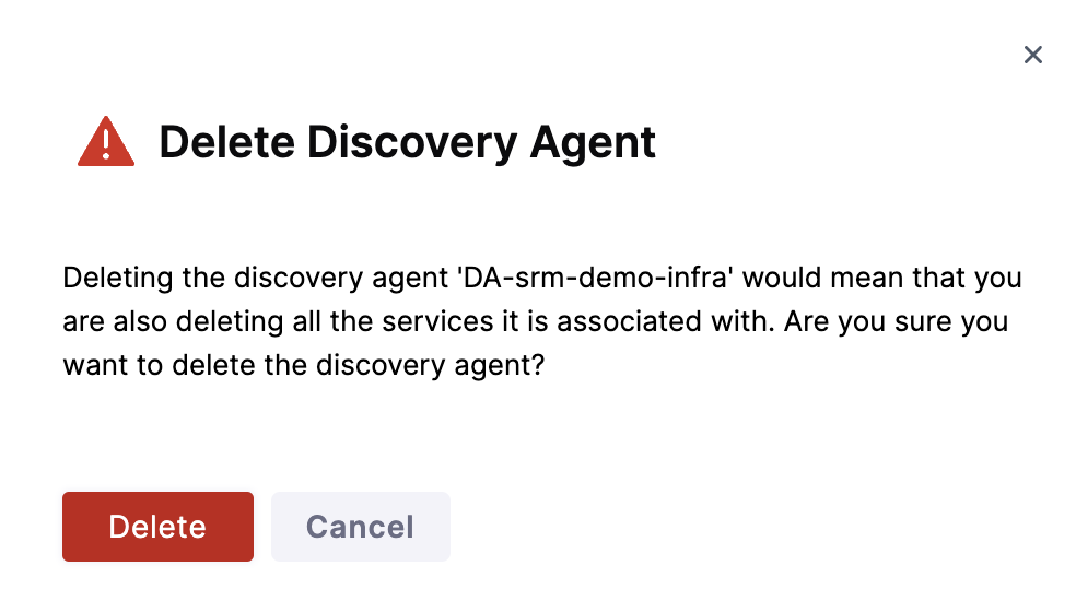 To delete a discovery agent, navigate to the agent you want to delete and select Delete.