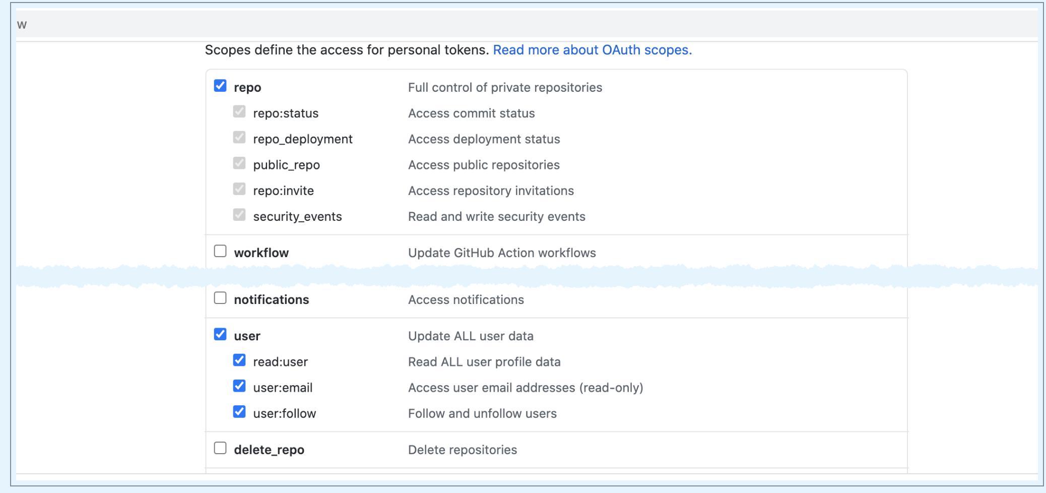 infoThe Git connector must use the Enable API access option and Username and Token authentication.