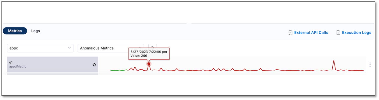 • Within the Metric tab, the graph associated with the breached metric is highlighted as anomalous during the breach period, vividly shown in deep red.