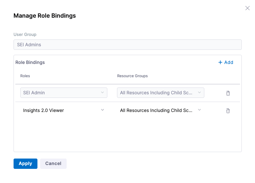 Harness SEI provides out-of-the-box roles for setting up access in SEI 2.0: SEI Admin, SEI Team Manager, and SEI Viewer.