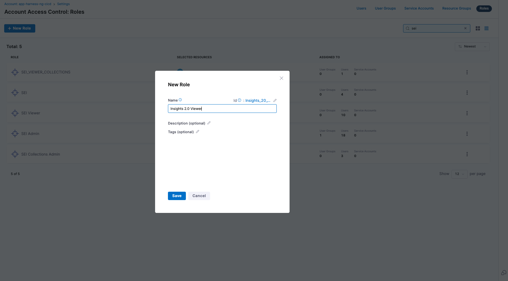 3. Give your role a Name (e.g. SEI 2.0 Viewer). Description and Tags are optional.
