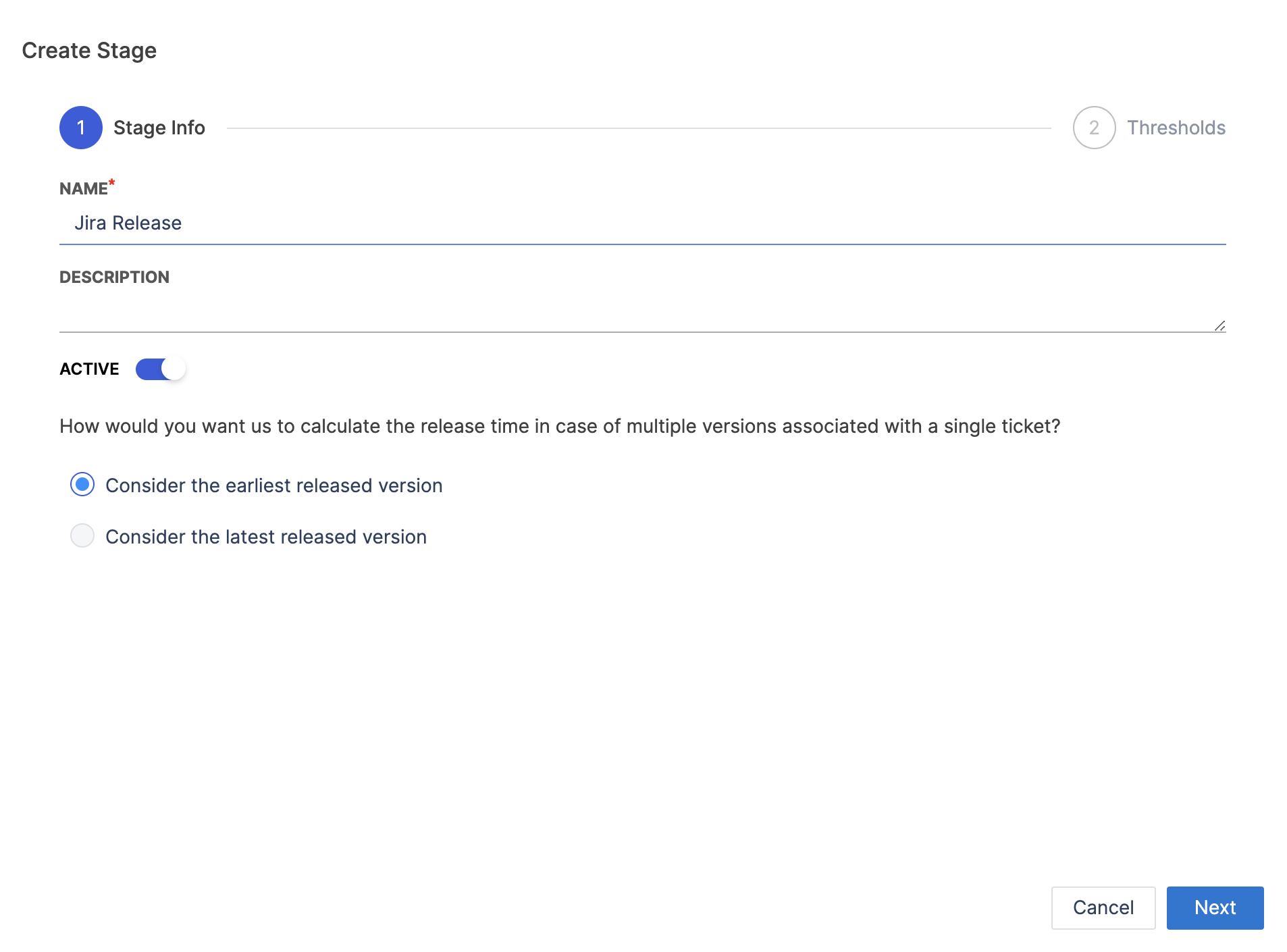 • Once enabled, the Jira release stage measures the lead time from the point when a ticket is resolved (i.e., the last stage before the release stage) to the actual release date of the feature or product.