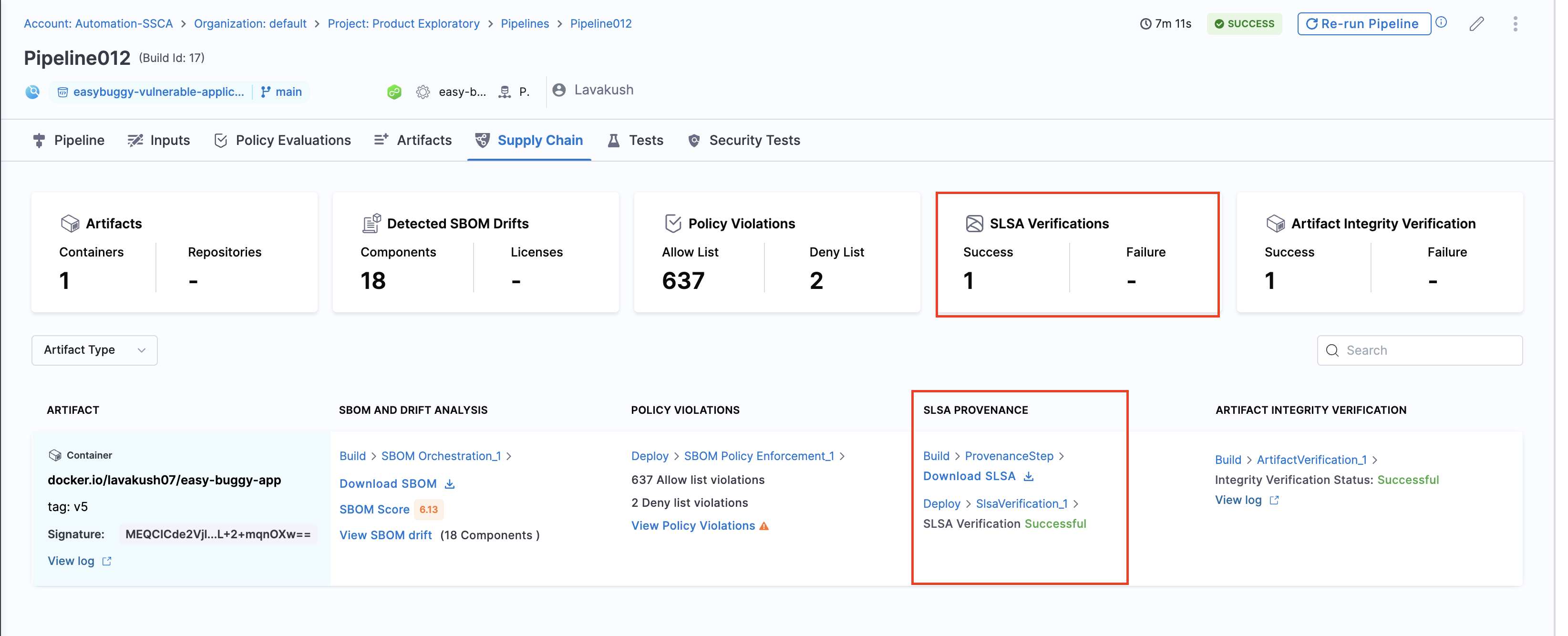 - Stores the SLSA Provenance in Harness and uploads the