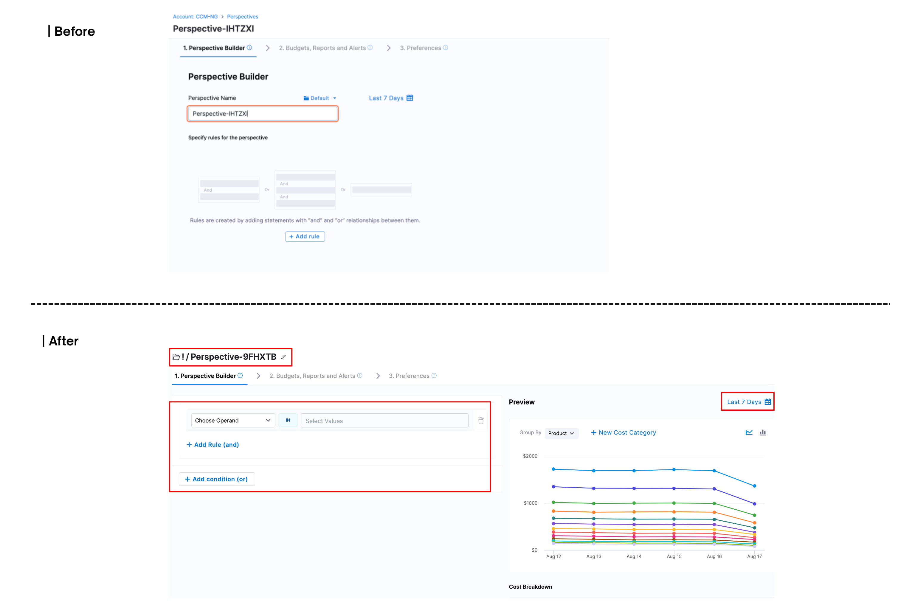 - Resource ID Support in Perspectives: Added "Resource ID" as a group by, filter, and operand across all cloud service providers, enabling more granular cost analysis and reporting. Resource ID - AWS Global Resource Name - GCP