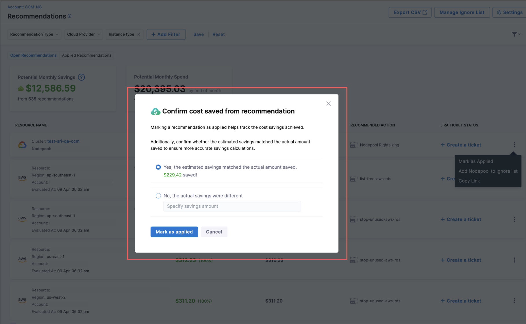 Status Mapping with Resolution Codes: Earlier, we introduced the ability to automatically update recommendation statuses based on Jira ticket status changes. Now, you can also choose Resolution Codes that will automatically update recommendations to Applied status.